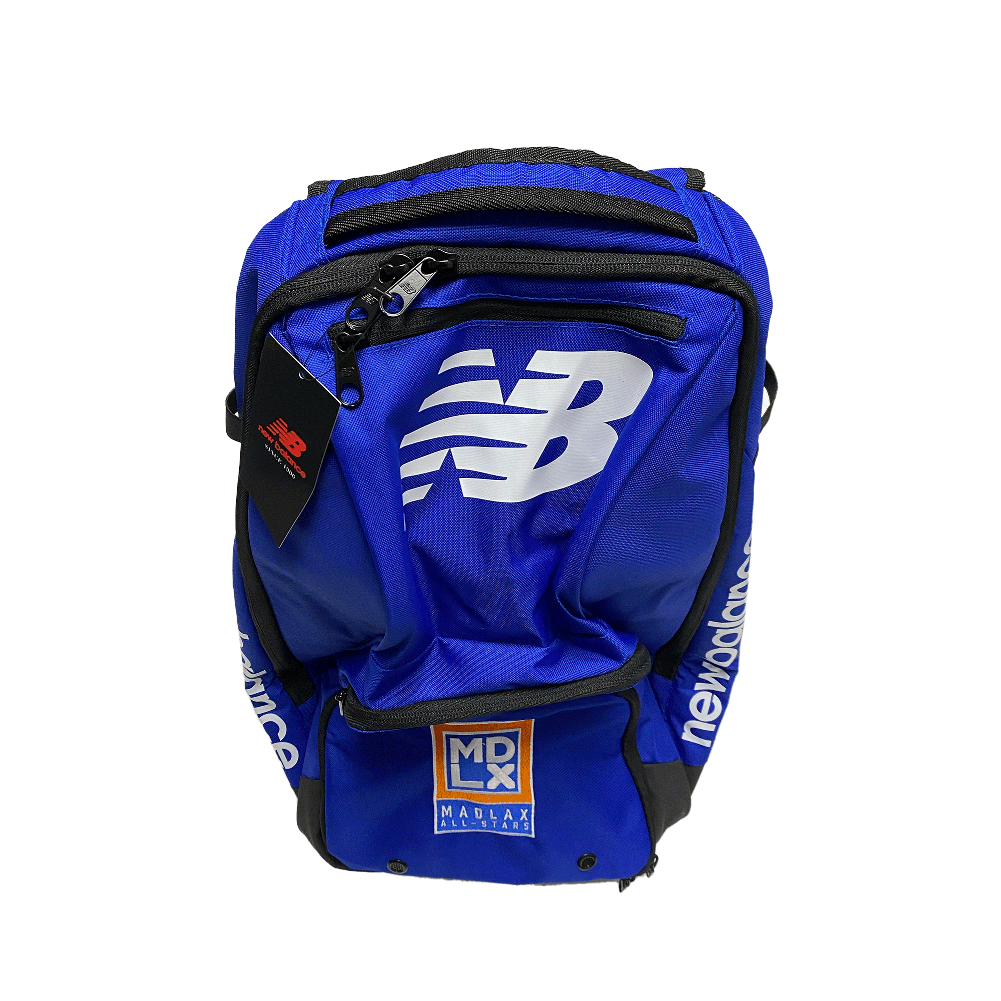 Come ready to play with our New Balance Team Field Backpack. Embroidered Madlax All-Stars Logo and Number as shown. All your gear CAN fit in this bag including a stick slot! Durable nylon fabric ensures it stands up to regular use and the roomy storage space needed. Athletes and fans can show off their team pride as they head to games and other activities with this fashionable and functional backpack.